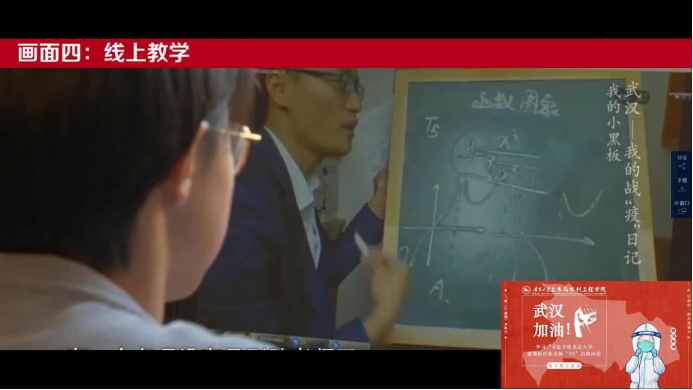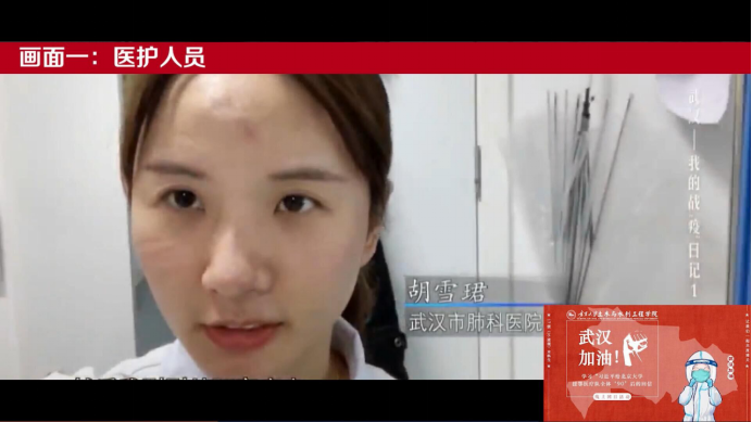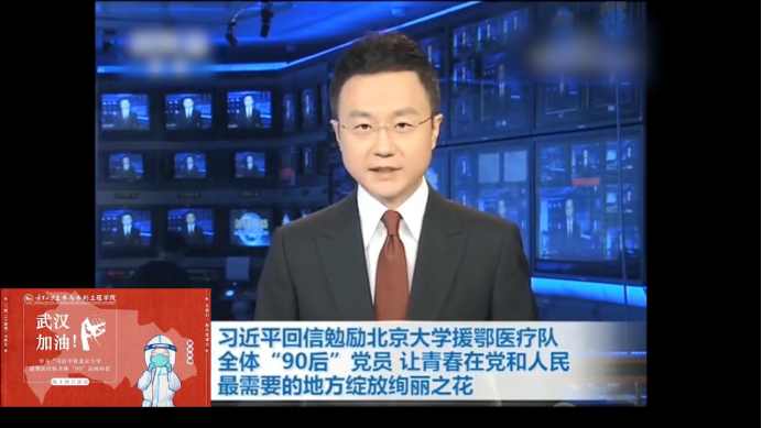 团日活动开始,播放了《习近平给北京大学援鄂医疗队全体�90’后的回信》的新闻联播画面。随后以抗疫日记为主题,选取了“医护人员”“建筑工地”“患者献血”“线上教学”“我们”等5个画面,通过以小见大的形式,为大家展现了战疫一线的感人故事:那一张张面容下的压痕,那一个个与时间赛跑的工地,那一幕幕舍己奉献的画面,还有离我们最近的老师们的第一次线上教学……通过观看直播视频,同学们纷纷在自己班级的QQ群内展开了讨论,接下来让我们看看�