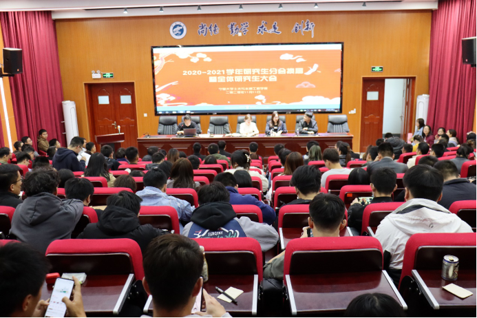 2020-2021学年研究生分会换届暨全体研究生大会于2020年11月11日下午在知行楼三楼阶梯教室召开。本次会议由研究生辅导员徐浩主持,党委副书记柳松洁,学院学生办公室主任王娜,团委副书记施宇以及全体研究生参加会议。