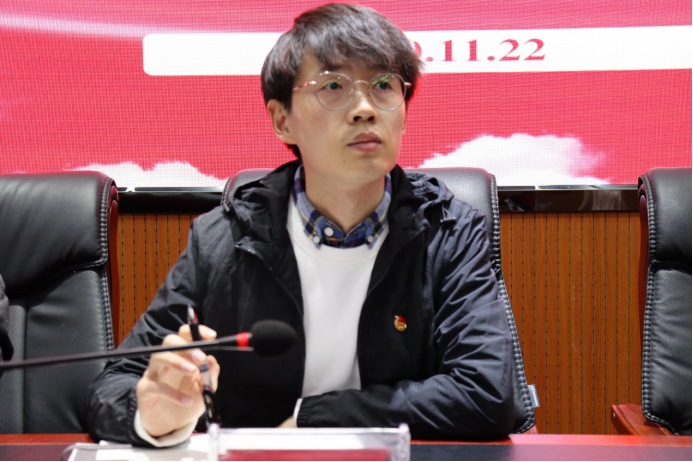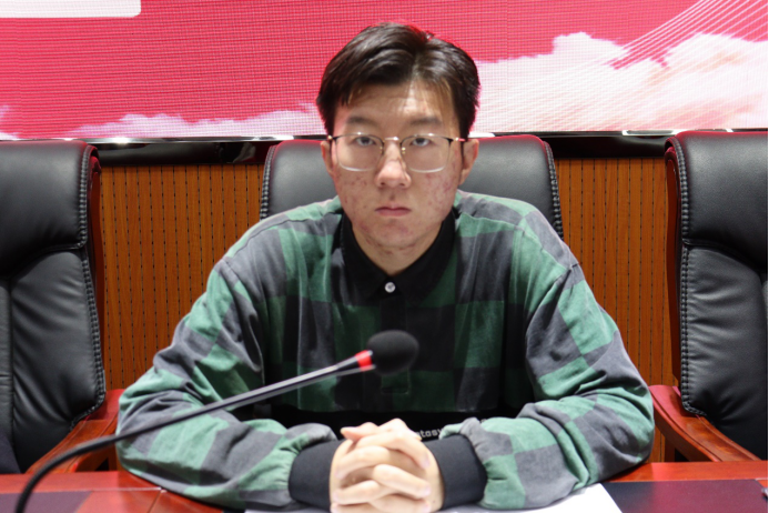 蒋宇欢作总结发言,他先对当前学生组织中存在的工作积极性不强的问题做出分析,蒋宇欢指出,工作积极性不高的原因是因为很多学生干部没有意识到自己为什么要成为一名学生干部,怎样做好一名学生干部。他强调,通过学生干部平台,学生可以提前了解社会、感知社会、融入社会、适应社会。学生干部拥有更多行动的契机,可以得到方方面面的锻炼,可以和志同道合的伙伴共同奋斗。蒋宇欢对与会人员提出了四点要求以予同学们共勉,一是端正态度,培养正确的世界观、人生观和价值观;二是找好定位,针对性的提高自身的能力;三是努力学习,杜绝挂科、迟到、旷课、违纪等行为;四是乐于牺牲,牺牲自己的休息时间协助老师完成工作任务,服务集体。