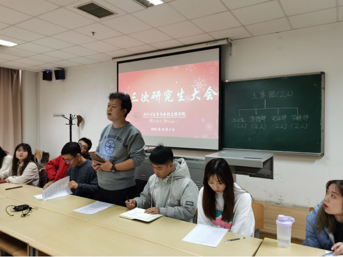 第三次全体研究生大会于二教308准时召开。本次会议由徐浩、柴明堂老师主持,全体研究生参加了本次研究生大会。