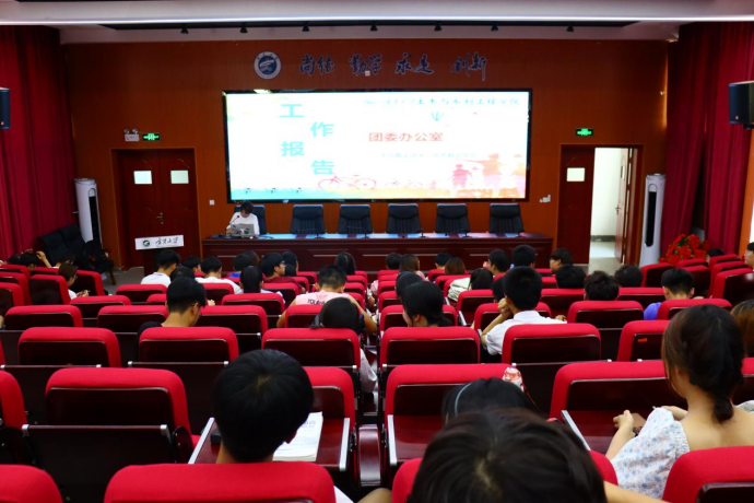 2021年6月25日中午,2020学生组织述职评议会在知行楼三楼阶梯教室成功举行,学生组织指导老师蒋宇欢及学院团委、学生会、易班工作站全体成员参加本次会议。会议由团委办公室主要负责人白嘉怡主持。
