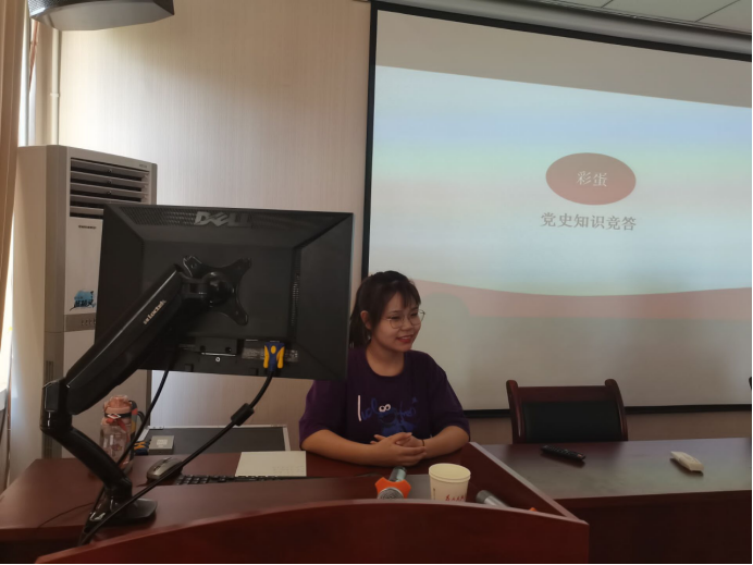 接着到了“党史知识竞答”的环节,同学们击鼓传花,被选中的同学们回答关于党史的问题,正确率很高,不幸答错的同学也都带着自己的小伙伴上去唱了《没有共产党就没有新中国》等红色歌曲或是积极向上的流行歌曲。同学们同聚一堂,在欢声笑语中学习党史知识�