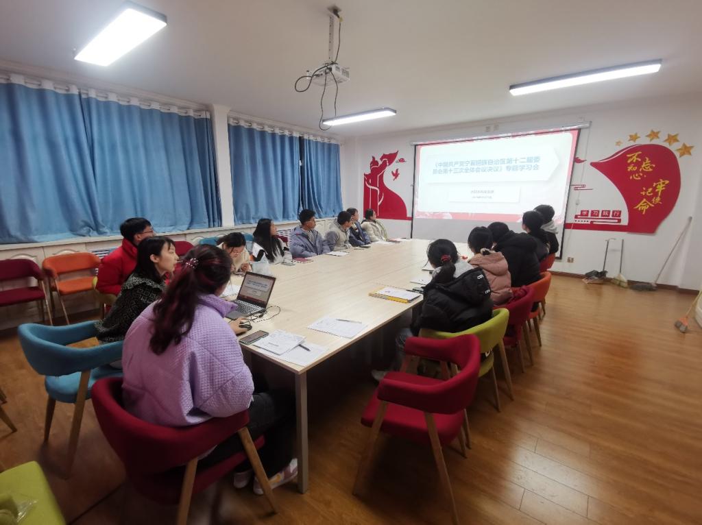 水利本科党支部于党员活动室召开党员大会,大会主要内容是深入学习自治区党委十二届十三次全会关于贯彻落实中央民族工作会议精神的部署要求。支部书记梁冀宁主持此次会议,支部学生党员11人,发展对象3人参加会议。