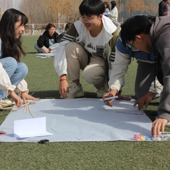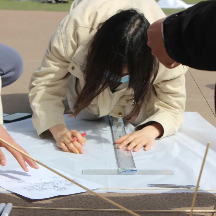 活动开始,主持人向参赛队伍宣布了活动的相关事宜并发放了活动材料。接下来进入活动制作过程,各小组在文萃校区运动场按照自己小组的创意在规定的制作时间进行风筝的制作。